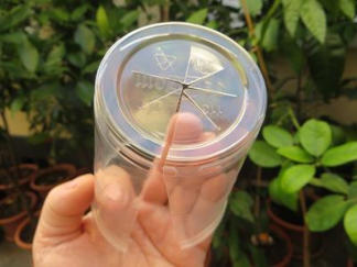 Dann wird am Boden ein Stern eingeschnitten das der Stängel durchpasst (Siehe Bilder)