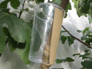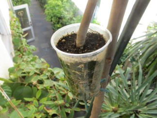 Wenn der Becher gut bewurzelt ist, so kann man unter den Becher den Stängel einfach abschneiden.