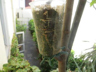 Nach etwa 3 Wochen sollte man im Becher schon die ersten Wurzeln sehen.