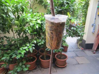 Jetzt immer schön den Becher gießen und darauf achten das die Erde im Becher immer feucht ist.