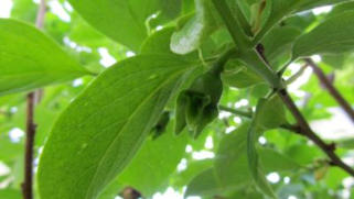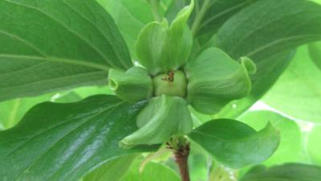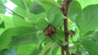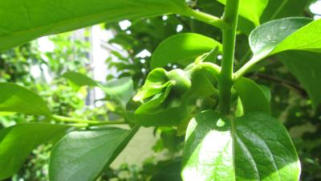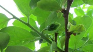 22.05.2012 der Kaki Baum ist voller Blätter + Knospen