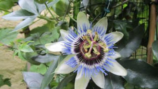 Die Passiflora Clear Sky Hybride ist eine Kreuzung aus P. Amethystina und P. Caerulea. Die Blüte ist ist mit 9 bis 12