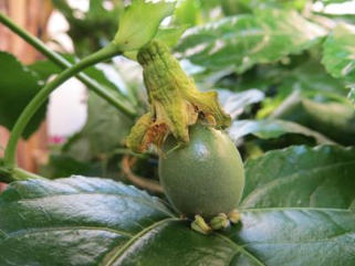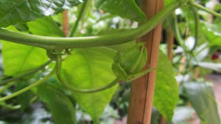 schon mehrere Metre lang und blüht. Es ist soweit, sie trägt 2014 die ersten Früchte und das gleich richtig viel.