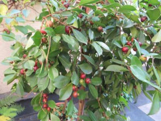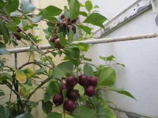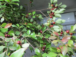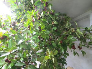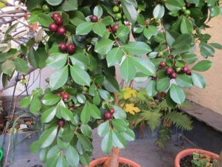 2m Pflanze die im Winter mehrere Hundert wohlschmeckende rote Früchte hatte. Nun ist eine zweite junge Pflanze