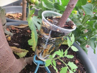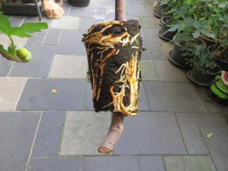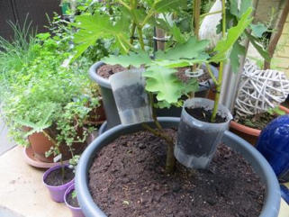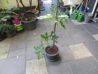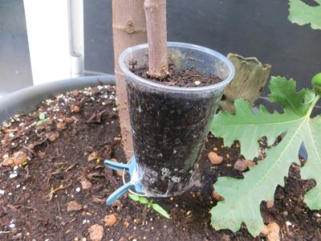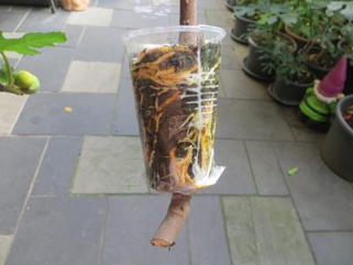 anschließend 2 Äste direkt abgeschnitten und als Steckling eingesetzt. Zwei weitere größere Äste habe ich Becher zum abmoosen