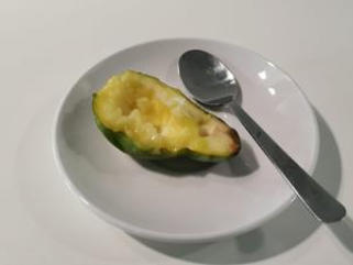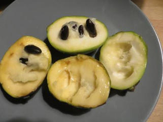 beheimatete Frucht überhaupt (Asimina triloba). Das gelblich-weiße Fruchtfleisch zergeht auf der Zunge, ist sehr