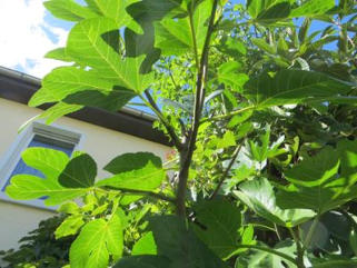 später im Juli 2024 ist die Pflanze über 2m hoch und hat die ersten Feigen. Noch sind sie klein. Ich werde hier aber berichten
