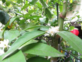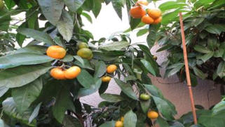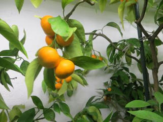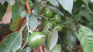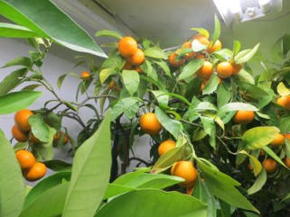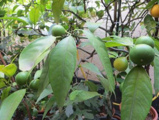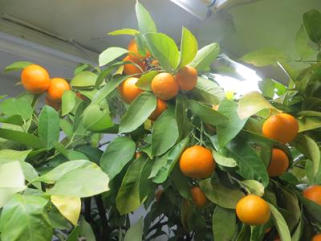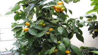 21.01.2012 die Satsumas und die Mandarinen werden reif im Überwinterungsraum. Bald ist die große Ernte während es draußen Winter ist.