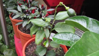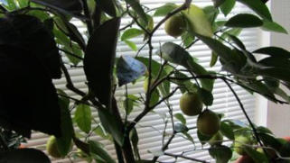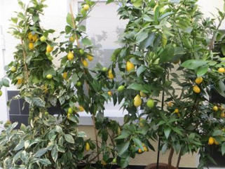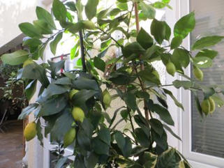 21.01.2012 die Zironen und die Limequats werden reif im Überwinterungsraum. Bald ist die große Ernte während es draußen Winter ist